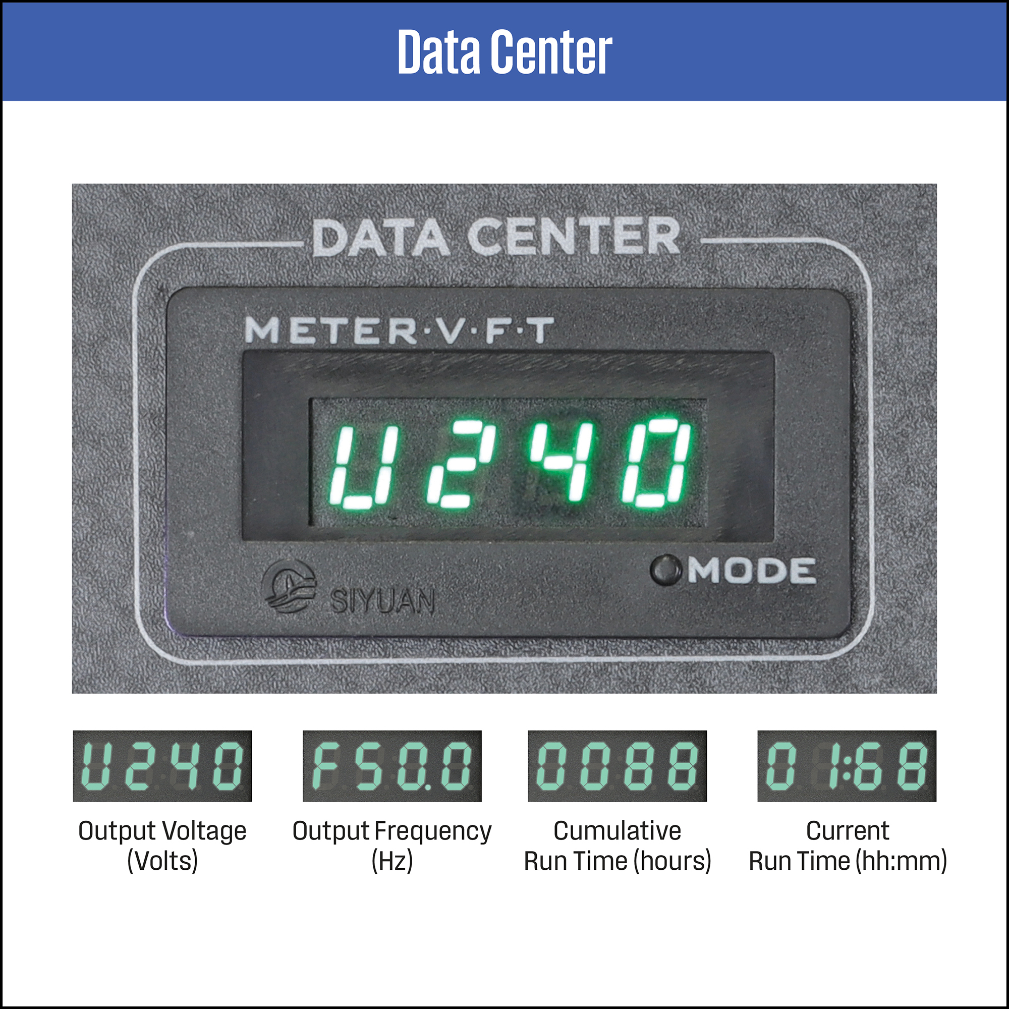 • Up to 8.8 hrs run time at 1/4 load on a 6.3-litre tank of fuel