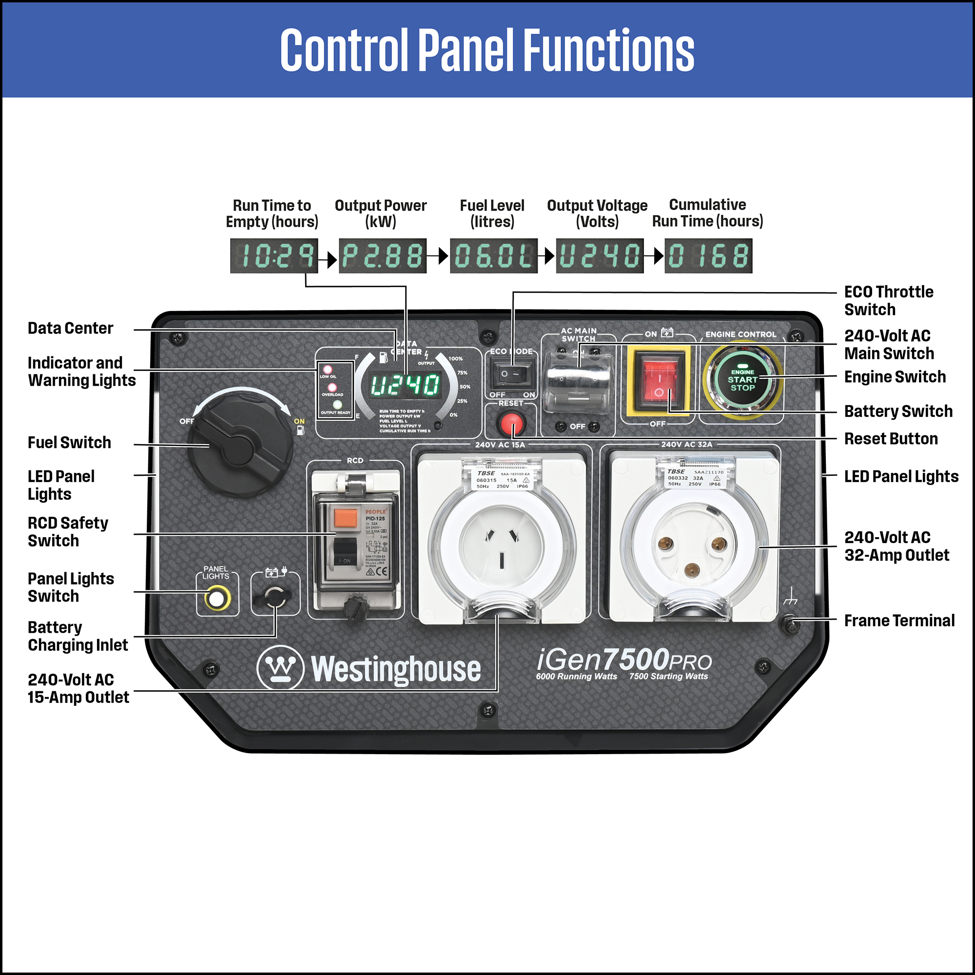 High output 7,500 Starting Watts / 6,000 Running Watts